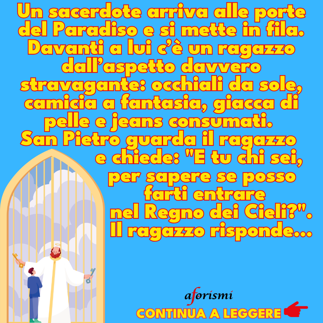 Un sacerdote arriva alle porte del Paradiso e si mette in fila. Davanti a lui c’è un ragazzo dall’aspetto davvero stravagante…25 Ottobre 202411 Settembre 2025di Aforismi.itPAROLE IN GIOCO