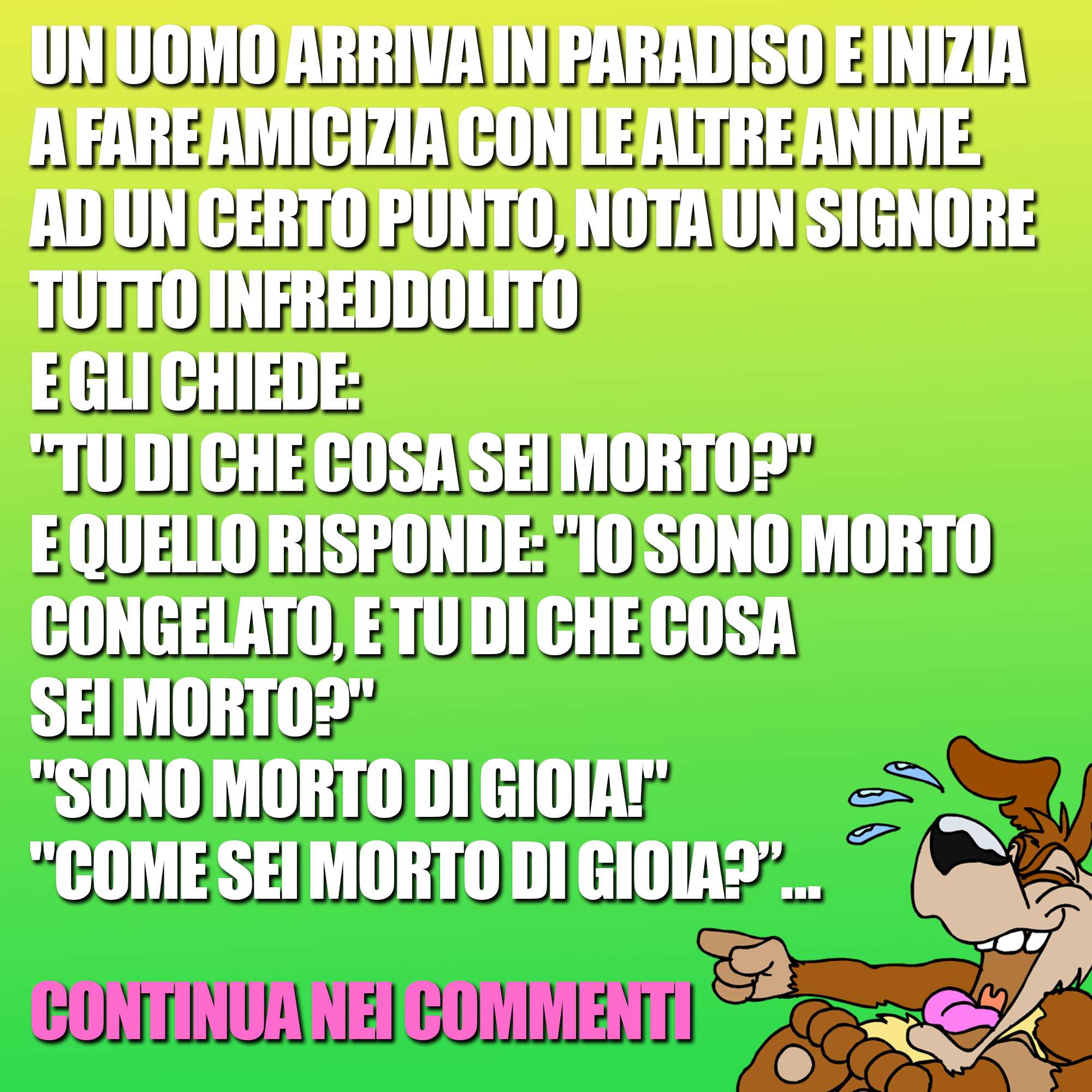 Un uomo arriva in Paradiso e inizia a fare amicizia con le altre anime. Ad un certo punto, nota un signore tutto infreddolito e gli chiede:”Tu di che cosa sei morto?”… Continua7 Agosto 20237 Agosto 2023di Aforismi.itSOCIETÀ