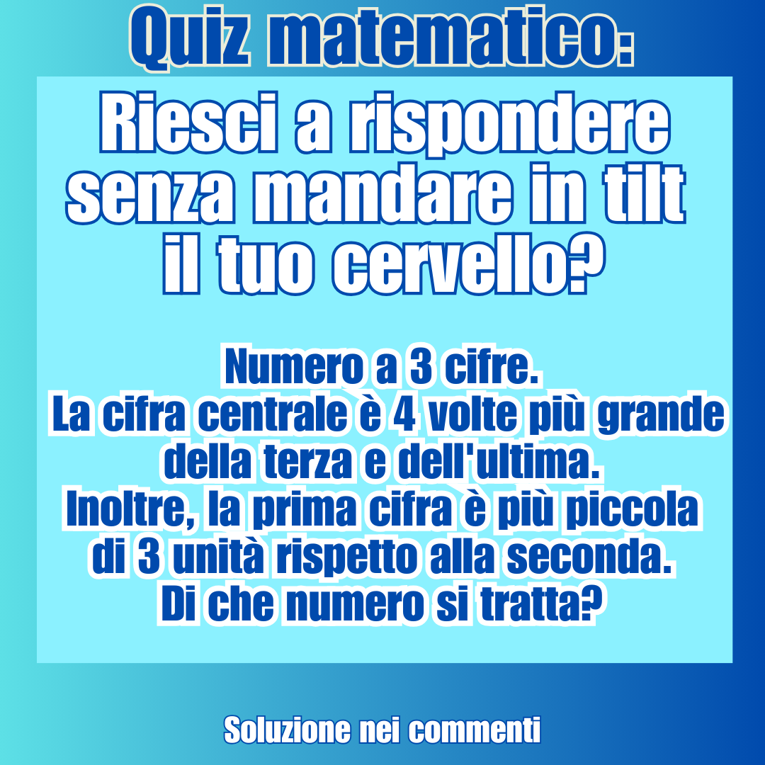 Quiz matematico: riesci a rispondere senza mandare in tilt il tuo cervello?27 Dicembre 202327 Dicembre 2023di taniaPAROLE IN GIOCO