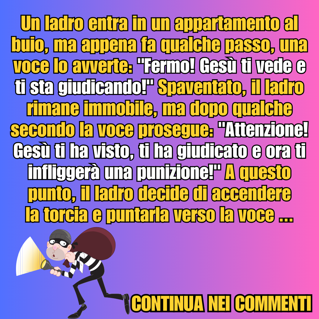 Un ladro entra in un appartamento al buio, ma appena fa qualche passo, una voce lo avverte…19 Gennaio 202419 Gennaio 2024di taniaPAROLE IN GIOCO