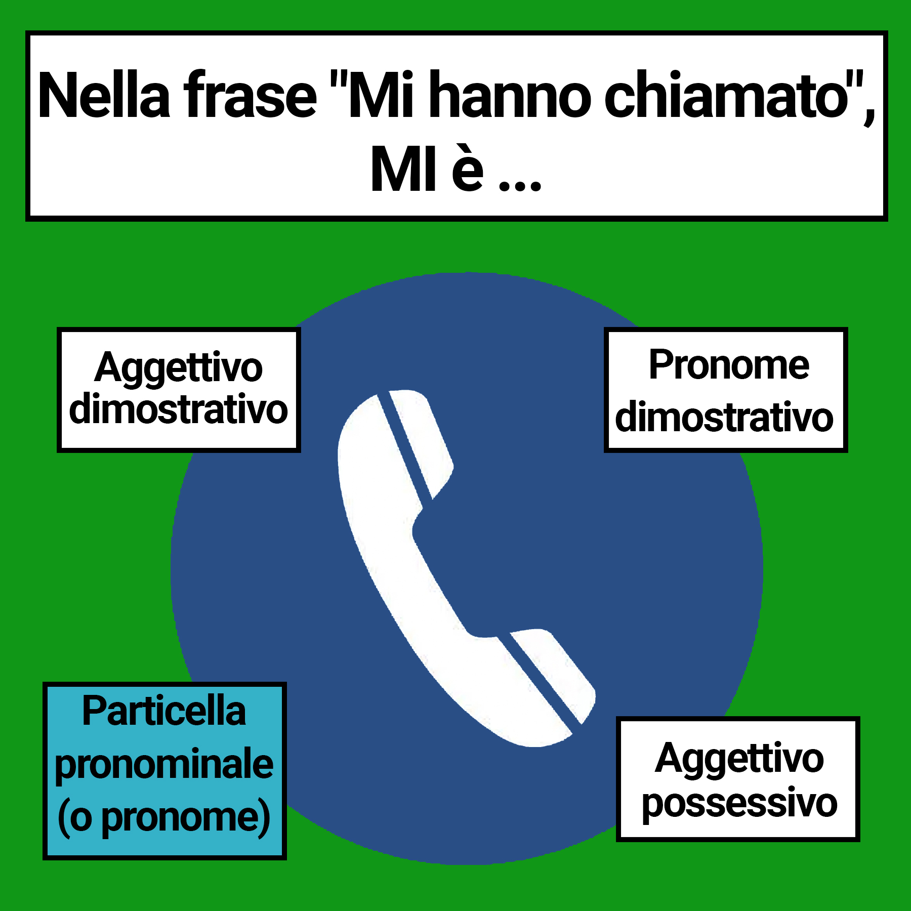 Particella pronominale: è il nome usato per indicare le parole invariabili e monosillabe “mi”, “ti”, “si”, “ci”, “vi”, seguite dalle forme atone “lo”, “la”, “li”, “le”, “ne”.