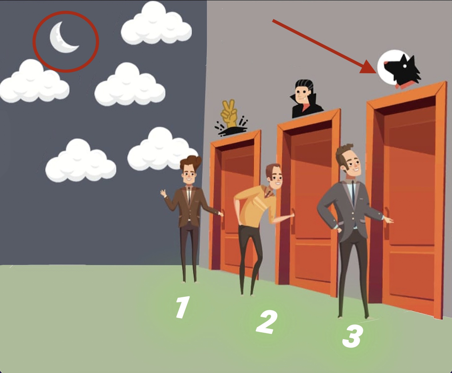 Concentratevi sulle targhe delle porte ma anche sull’ambiente circostante. Un elemento in particolare vi darà lo spunto per capire quale delle tre porte è davvero letale, riesci a capire di quale dettaglio stiamo parlando? Scannerizzate con la vista l’intera immagine e forse riuscirete a risolvere questo misterioso enigima.