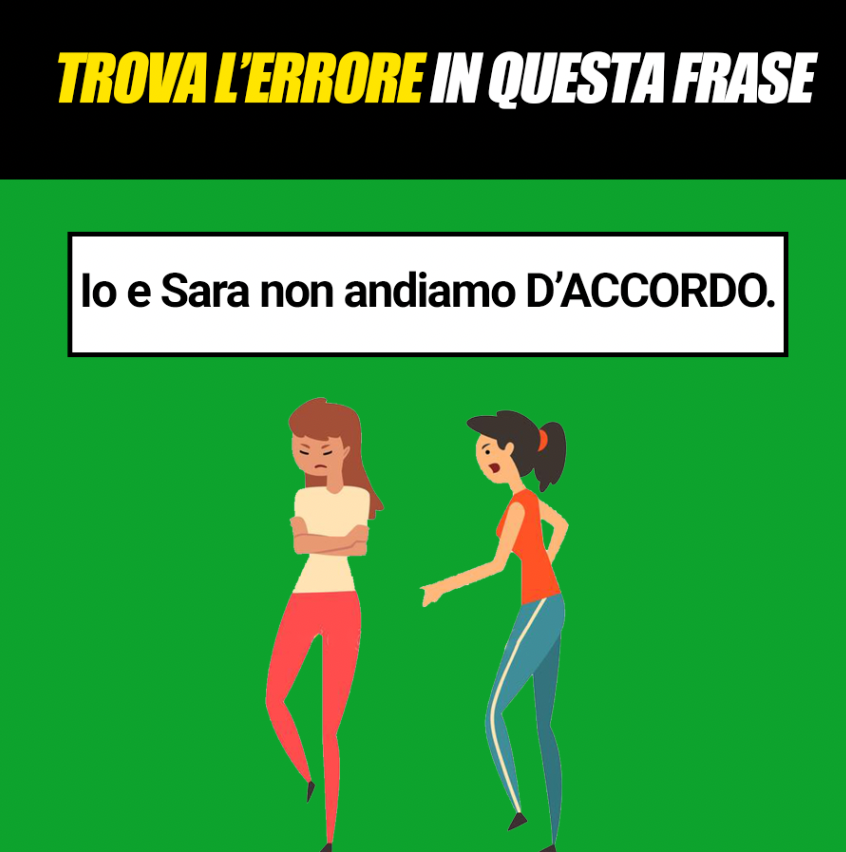 Eccoci con una nuova frase che contiene al suo interno un errore davvero evidente. Come al solito si tratta di una frase molto breve. Non tutti riusciranno a vedere l’errore al suo interno ma questo è il posto giusto per svelarti la soluzione e se da solo sei ancora riuscito a risolvere questo enigma, eccola subito dopo l’immagine.