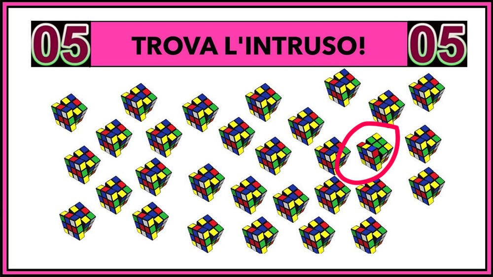 Tali cubi magici rappresentati dovrebbero essere tutti perfettamente identici tra loro. Tuttavia uno ed uno soltanto si distingue dagli altri. In quanto tempo riuscite a trovare l’intruso?