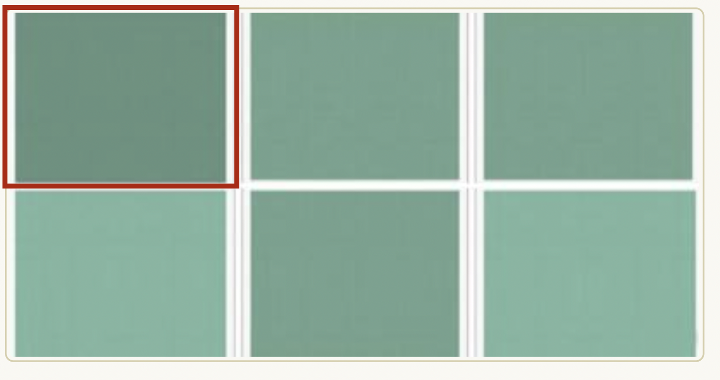 Potresti pensare che concentrandoti su ognuno di questi rettangoli verdi, l’impresa risulti più semplice. Tuttavia ti consiglio di allontanare un pò il dispositivo dagli occhi e farti un’idea generale dell’immagine nel suo complesso. A quel punto sarà molto più semplice capire quale rettangolo è il più scuro. In ogni caso guarda la soluzione per vedere se hai indovinato, ma prima…