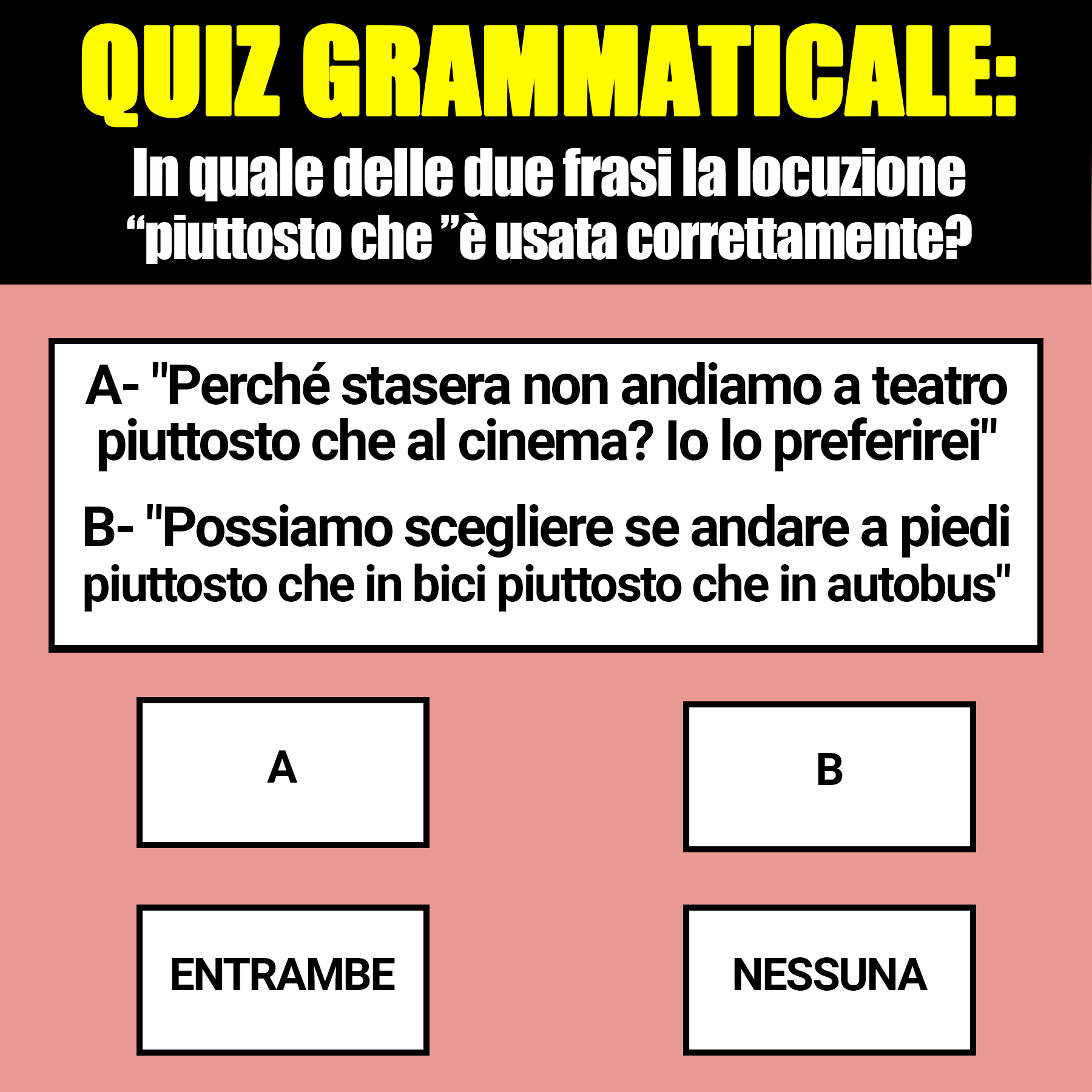 In quale delle due frasi la locuzione “piuttosto che” è usata correttamente?21 Luglio 202321 Luglio 2023di davidPAROLE IN GIOCO