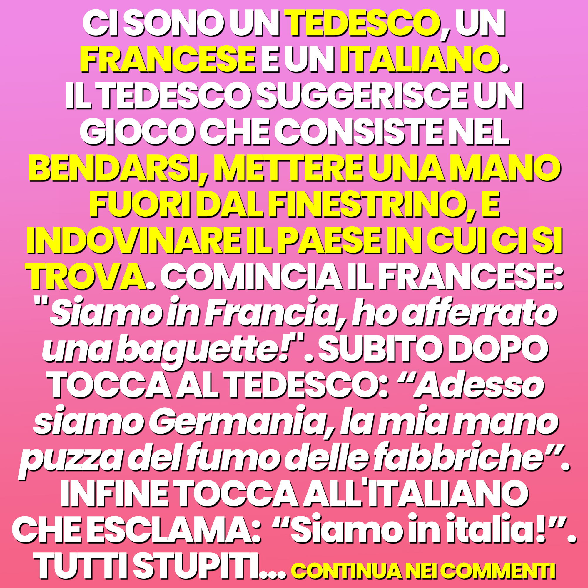 Ci sono un tedesco, un francese e un italiano. Il tedesco suggerisce un gioco che consiste nel bendarsi…17 Aprile 202317 Aprile 2023di Aforismi.itPAROLE IN GIOCO