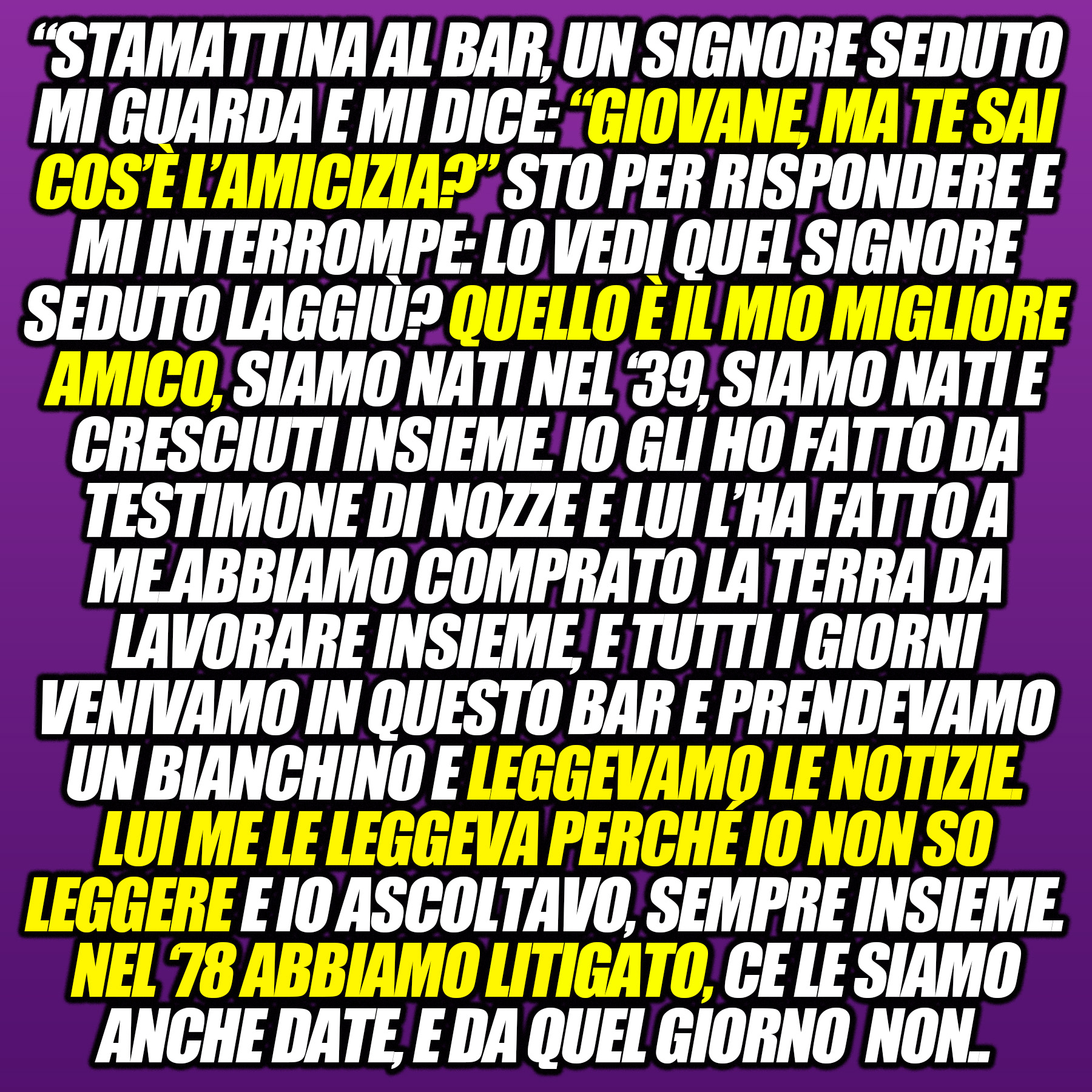 “Stamattina al bar, un signore seduto mi guarda e mi dice:“Giovane, ma te sai cos’è l’amicizia?”Sto per…Altro…23 Marzo 202327 Marzo 2023di davidPAROLE IN GIOCO
