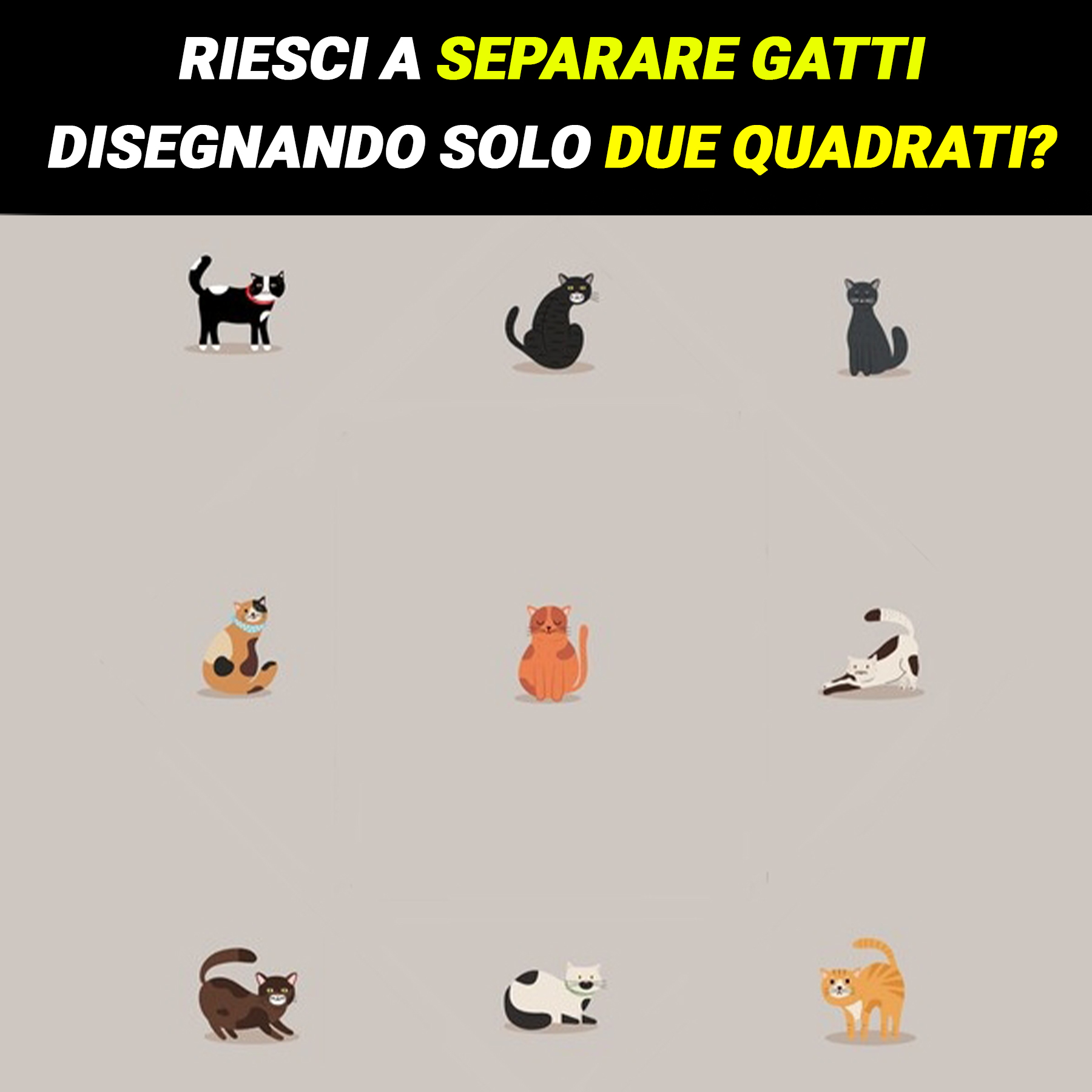 Testa il tuo pensiero divergente: separa i gatti l’uno dall’altro disegnando solamente due quadrati17 Maggio 202217 Maggio 2022di davidPAROLE IN GIOCO