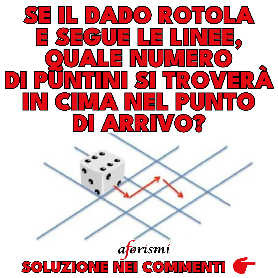 Sfida di logica: riesci a capire quale numero apparirà in cima al dado?24 Settembre 202424 Settembre 2024di Aforismi.itPAROLE IN GIOCO