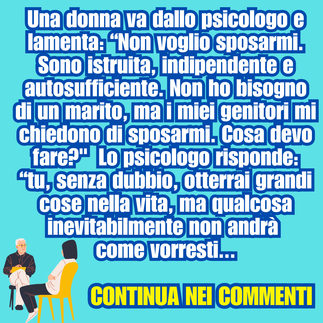 Una donna va dallo psicologo e lamenta: “Non voglio sposarmi. Non ho bisogno di un marito, ma i miei genitori mi chiedono di sposarmi. Cosa devo fare?”16 Dicembre 202316 Dicembre 2023di taniaPAROLE IN GIOCO