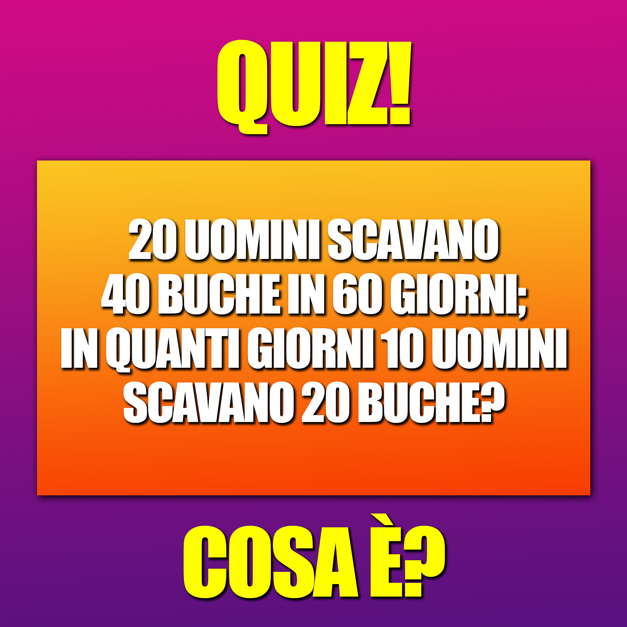 20 uomini scavano 40 buche in 60 giorni; in quanti giorni 10 uomini scavano 20 buche?11 Ottobre 202311 Ottobre 2023di davidPAROLE IN GIOCO