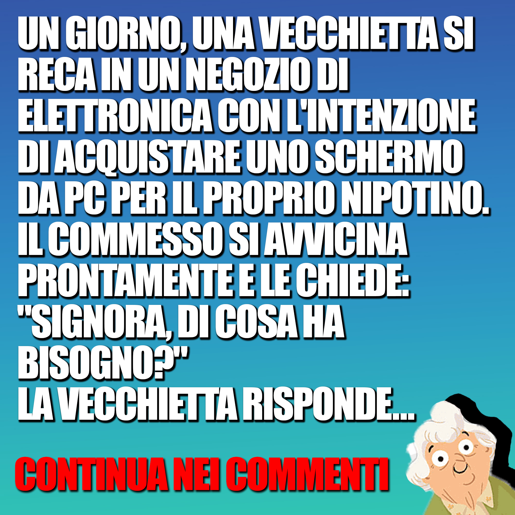 Un giorno, una vecchietta si reca in un negozio di elettronica con l’intenzione di acquistare… Continua2 Ottobre 20232 Ottobre 2023di davidSOCIETÀ