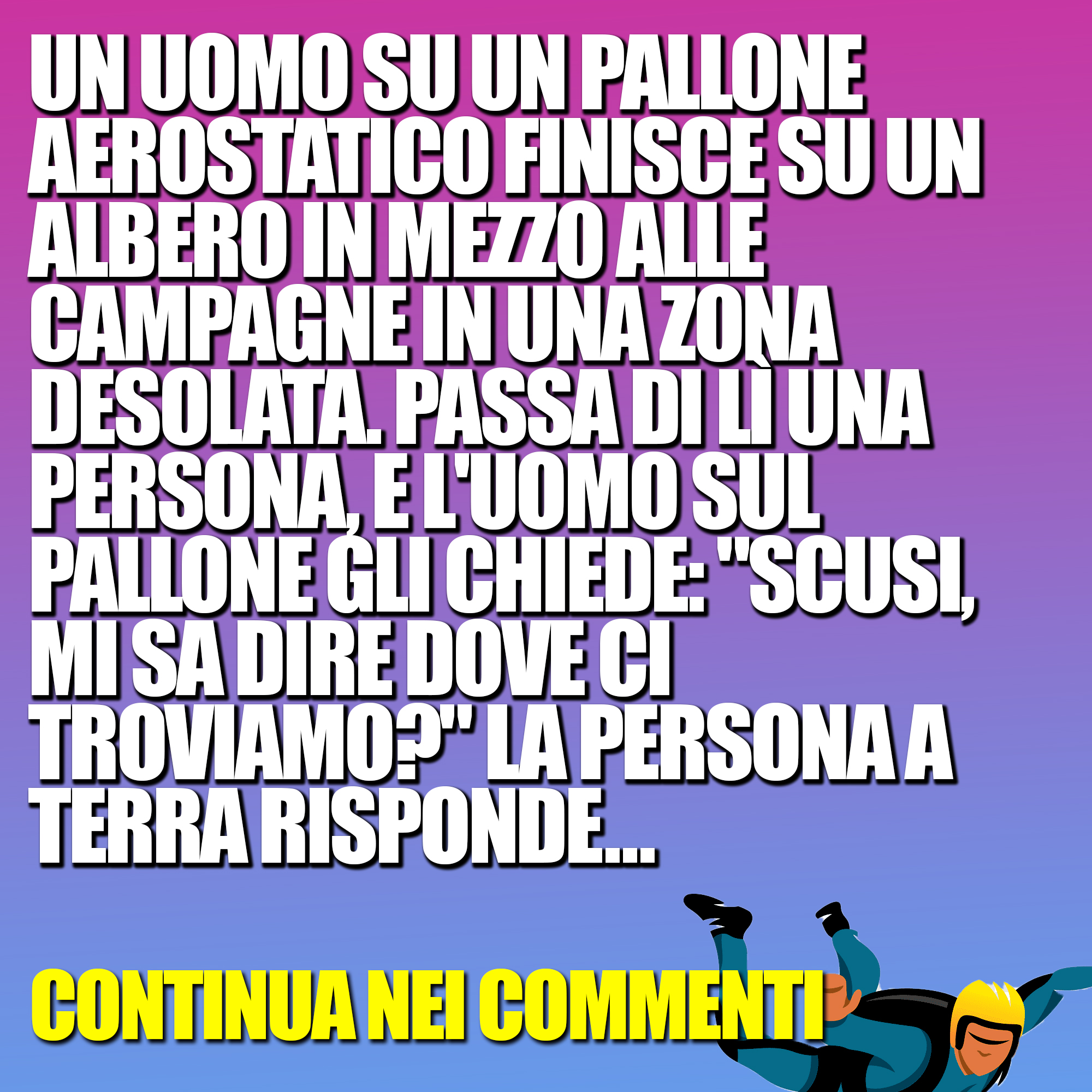 Un uomo su un pallone aerostatico finisce su un albero in mezzo alle campagne in una zona desolata. Passa di lì una persona… Continua28 Settembre 202328 Settembre 2023di davidSOCIETÀ