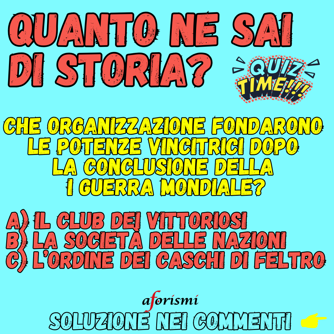 Ecco la domanda di oggi: Che organizzazione fondarono le potenze vincitrici dopo la conclusione della I Guerra Mondiale?29 Marzo 2025di Aforismi.itPAROLE IN GIOCO