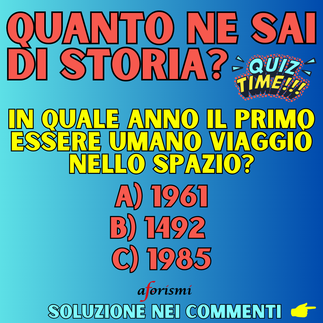Quiz time! In quale anno il primo essere umano viaggiò nello spazio?29 Marzo 202511 Settembre 2025di Aforismi.itPAROLE IN GIOCO