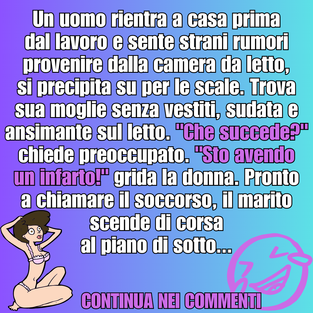 Un uomo rientra a casa prima dal lavoro, sente strani rumori provenire dalla camera da letto e trova sua moglie senza vestiti, sudata e ansimante…3 Febbraio 20243 Febbraio 2024di taniaPAROLE IN GIOCO