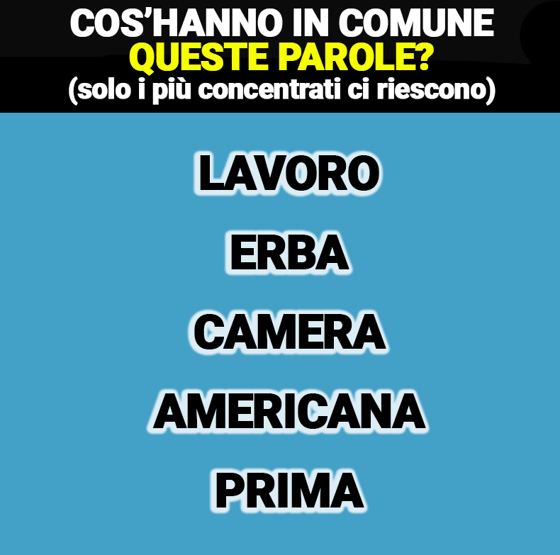Riesci a dire quale parola lega a sé tutte quelle elencate? Metti alla prova la tua concentrazione23 Dicembre 202122 Dicembre 2022di davidPAROLE IN GIOCO