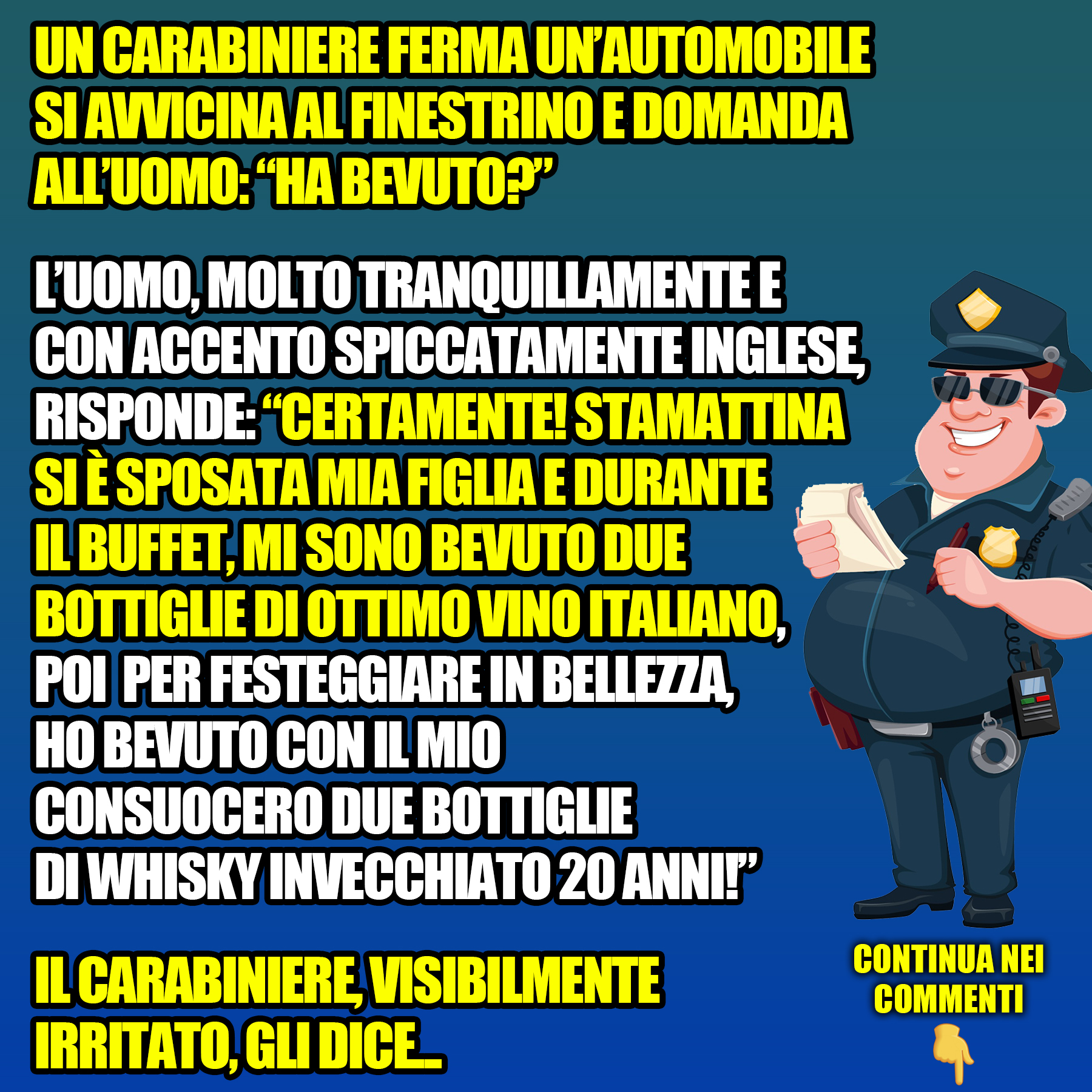 Un carabiniere ferma un’automobile si avvicina al finestrino e domanda all’uomo: “Ha bevuto?” e lui…16 Luglio 202316 Luglio 2023di davidPAROLE IN GIOCO