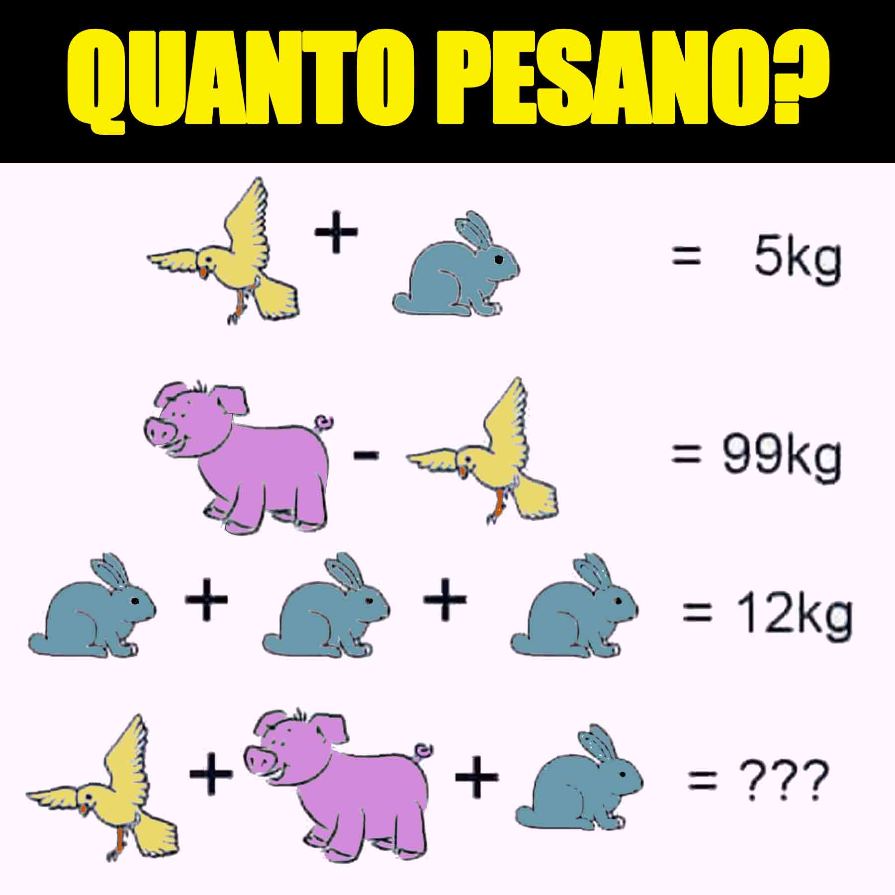 Quanto pesano complessivamente gli animali? Metti alla prova le tua capacità matematiche e rispondi a questo quiz!28 Giugno 202311 Settembre 2025di davidPAROLE IN GIOCO