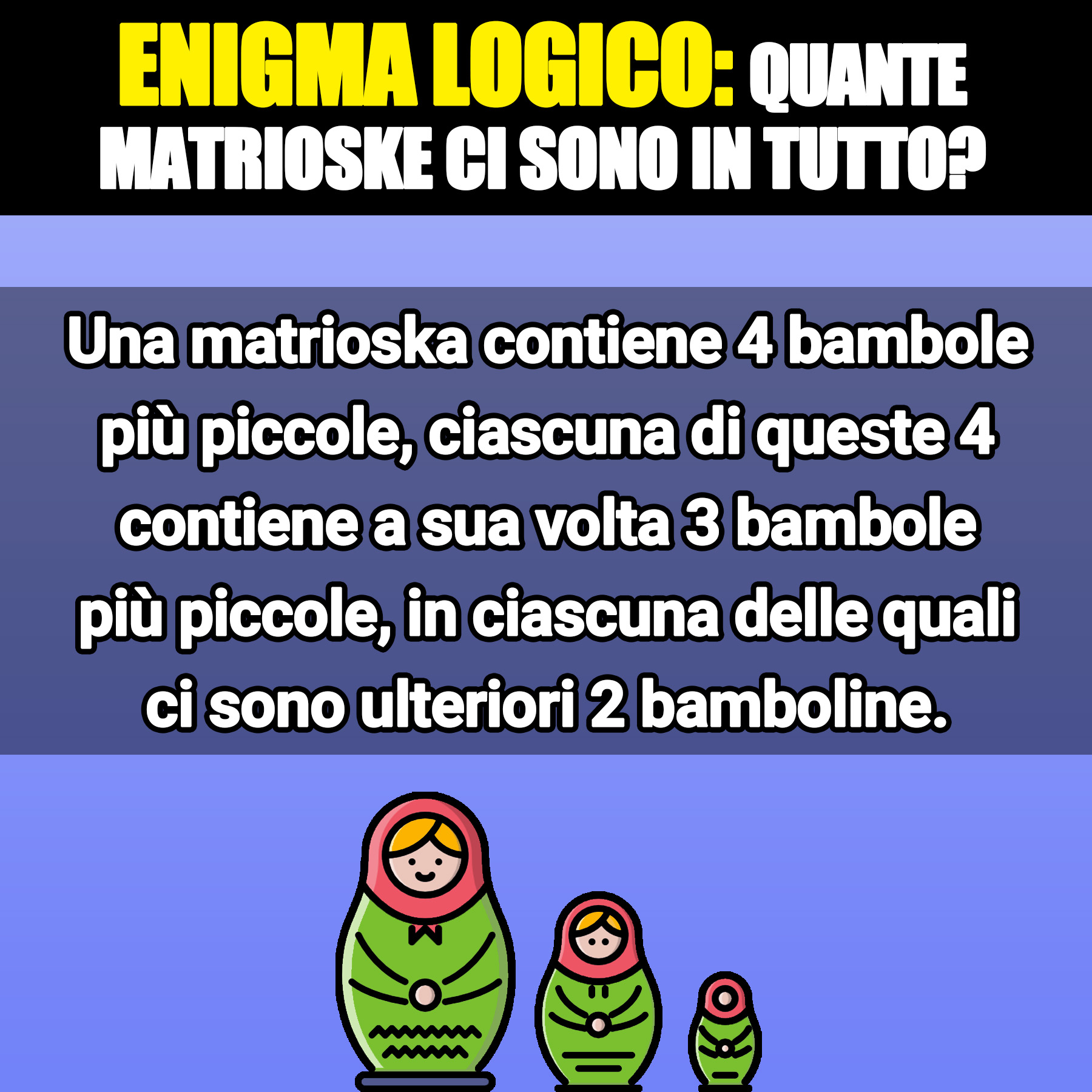 Enigma logico- matematico. Quante matrioske ci sono in tutto?20 Giugno 202320 Giugno 2023di davidPAROLE IN GIOCO