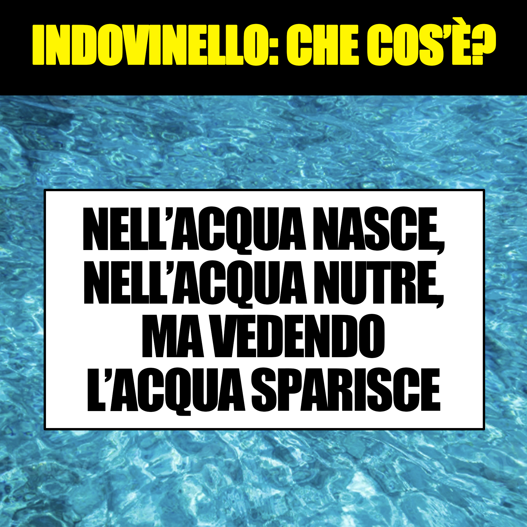 Nell’acqua nasce, nell’acqua nutre, ma vedendo l’acqua sparisce. Che cos’è?16 Giugno 202316 Giugno 2023di davidPAROLE IN GIOCO