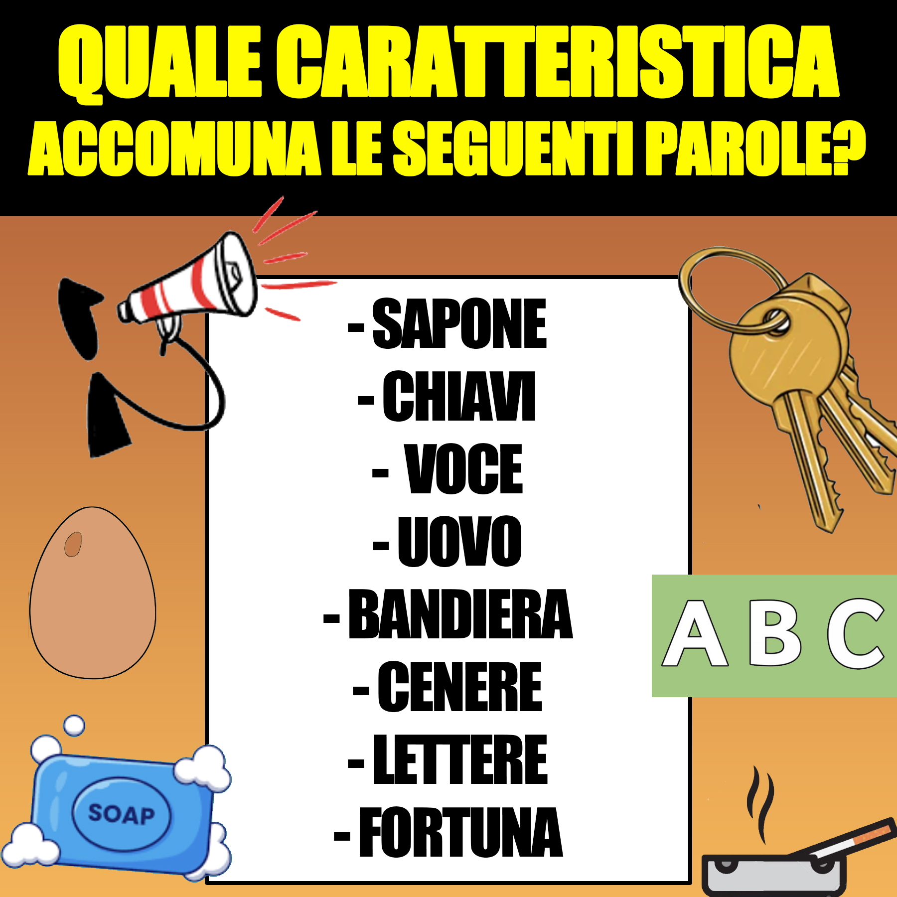 Quale caratteristica accomuna le seguenti parole???16 Giugno 202316 Giugno 2023di davidPAROLE IN GIOCO