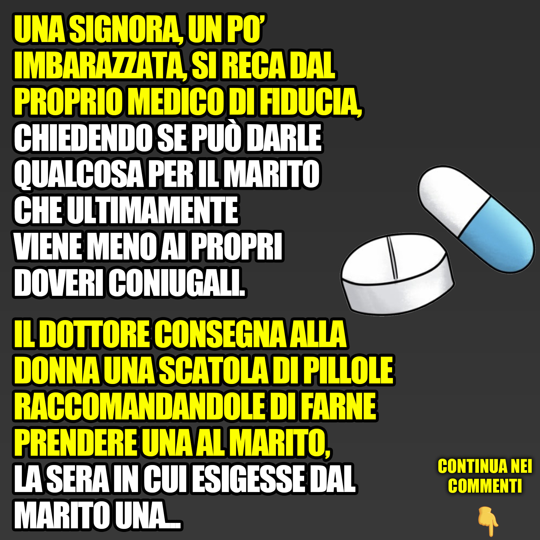 Una signora, un po’ imbarazzata, si reca dal proprio medico di fiducia, chiedendo se può darle qualcosa per il marito…14 Giugno 202314 Giugno 2023di davidPAROLE IN GIOCO