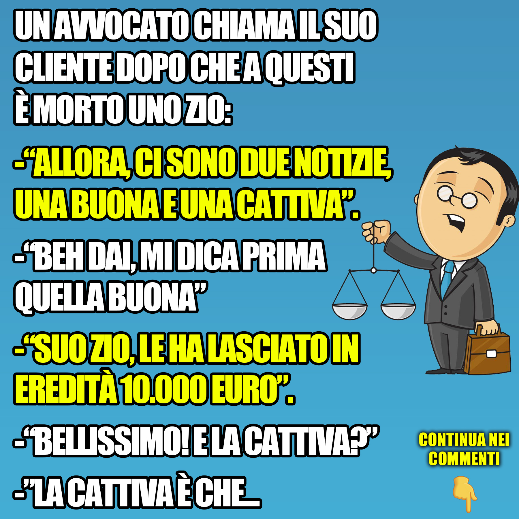 Un avvocato chiama il suo cliente dopo che a questi è morto uno zio: “Allora, ci sono due notizie, una buona e una cattiva…”12 Giugno 202312 Giugno 2023di davidPAROLE IN GIOCO