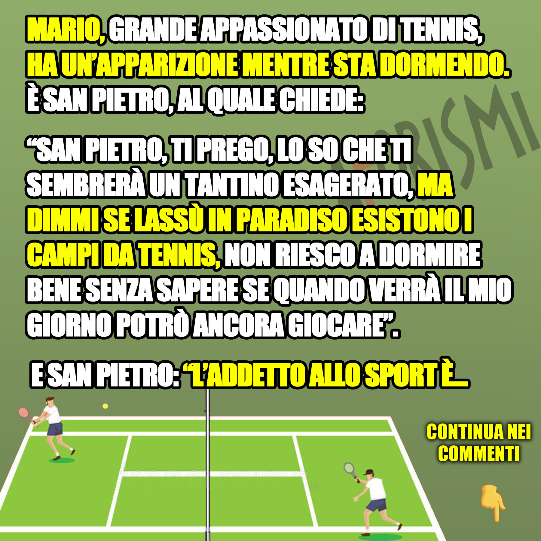 Mario, grande appassionato di tennis, ha un’apparizione mentre sta dormendo. È San Pietro, al quale chiede: “San Pietro, ti prego, lo so che ti sembrerà strano…29 Maggio 202311 Settembre 2025di davidPAROLE IN GIOCO