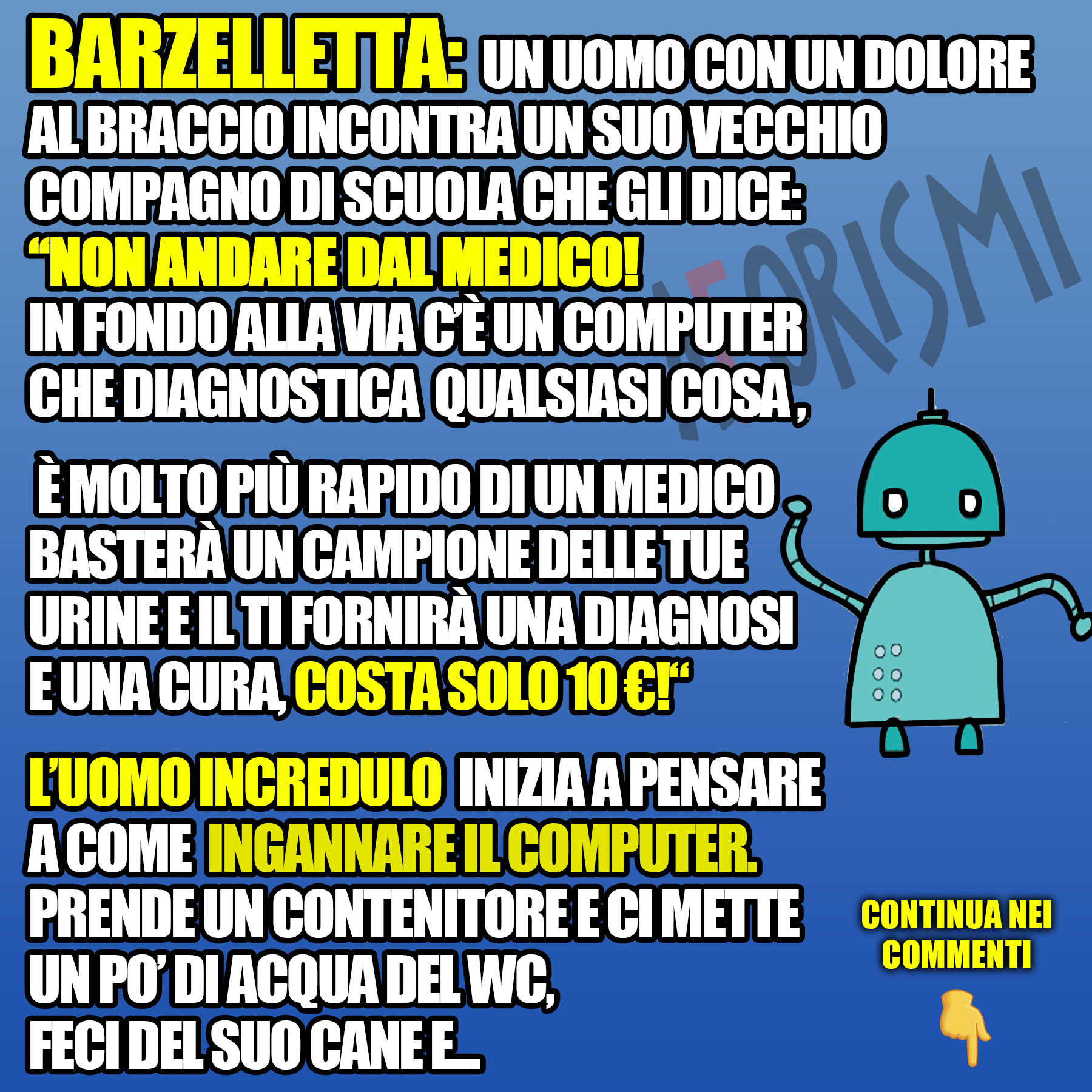 Barzelletta: “Non andare dal medico, c’è un computer nel nuovo locale in fondo a questa via che può diagnosticare qualsiasi cosa molto più…23 Maggio 202311 Settembre 2025di davidPAROLE IN GIOCO