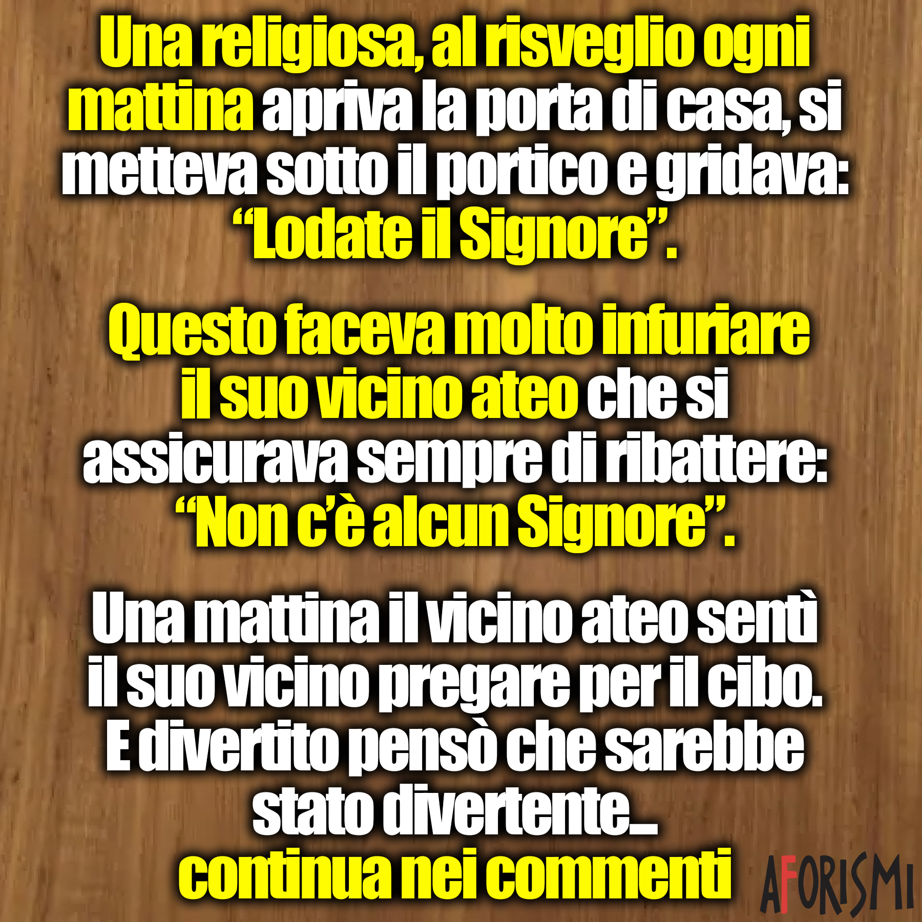 Una religiosa si sveglia ogni mattina e grida:”Lodate il signore”, facendo infuriare il vicino di…18 Maggio 202318 Maggio 2023di davidPAROLE IN GIOCO