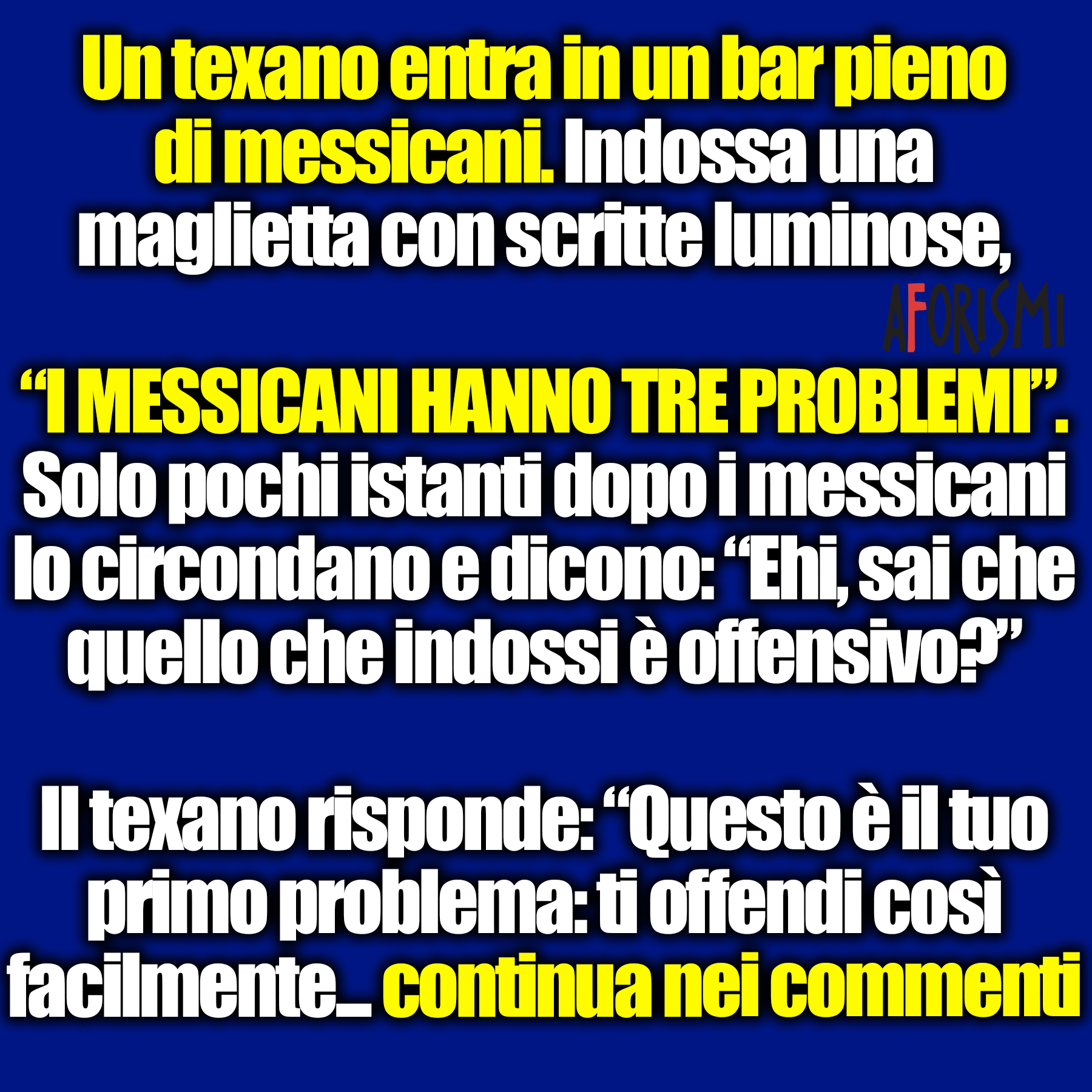 Un uomo texano entra in bar pieno di messicani. Indossa una maglietta con scritto…19 Maggio 202322 Maggio 2023di davidPAROLE IN GIOCO