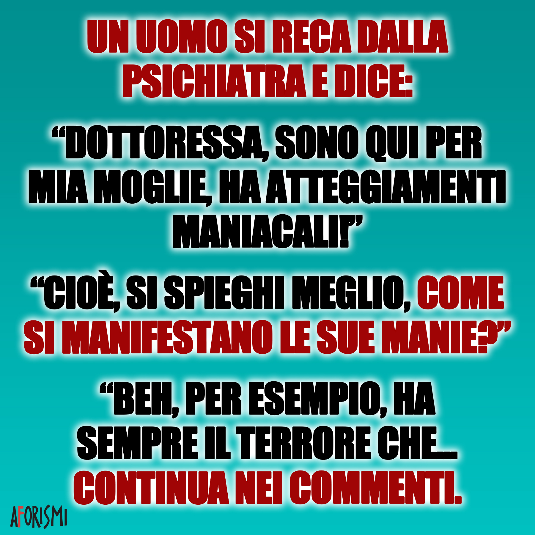 Un uomo si reca dalla psichiatra e dice: ‘Dottoressa, sono qui per mia moglie…15 Maggio 202315 Maggio 2023di davidPAROLE IN GIOCO