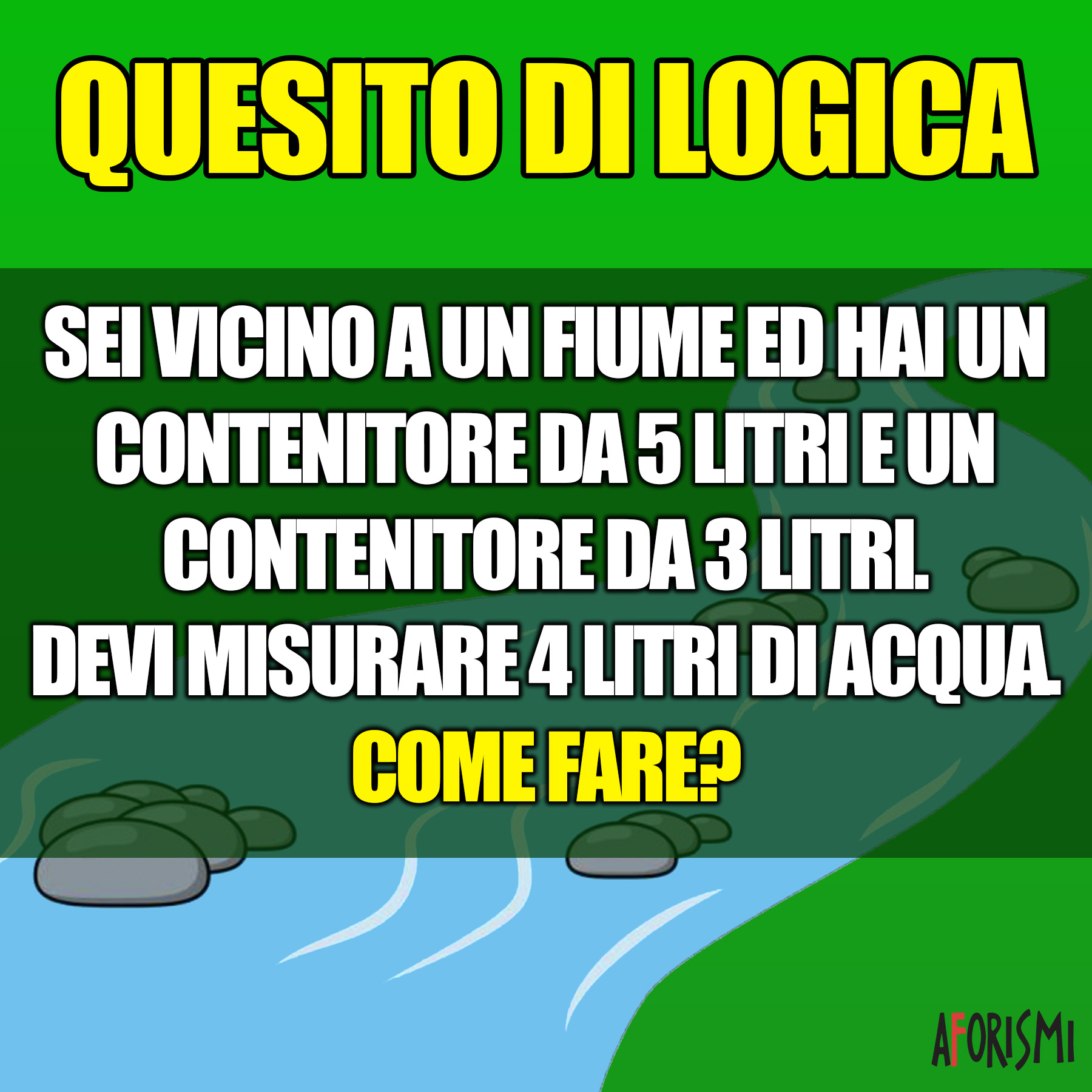 Quesito di logica: come fare a misurare 4 litri d’acqua?28 Aprile 202311 Settembre 2025di davidPAROLE IN GIOCO