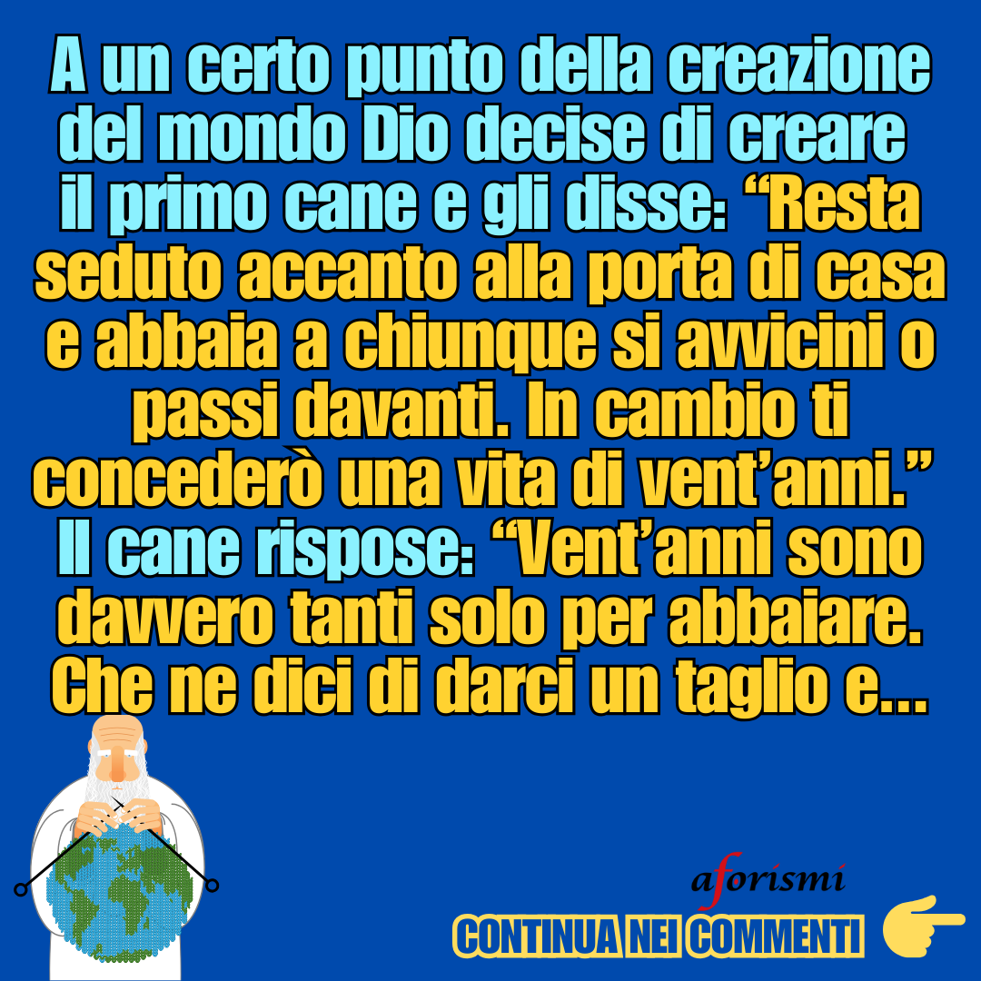 A un certo punto della creazione del mondo Dio decise di creare il primo cane e gli disse … CONTINUA5 Novembre 20245 Novembre 2024di Aforismi.itPAROLE IN GIOCO