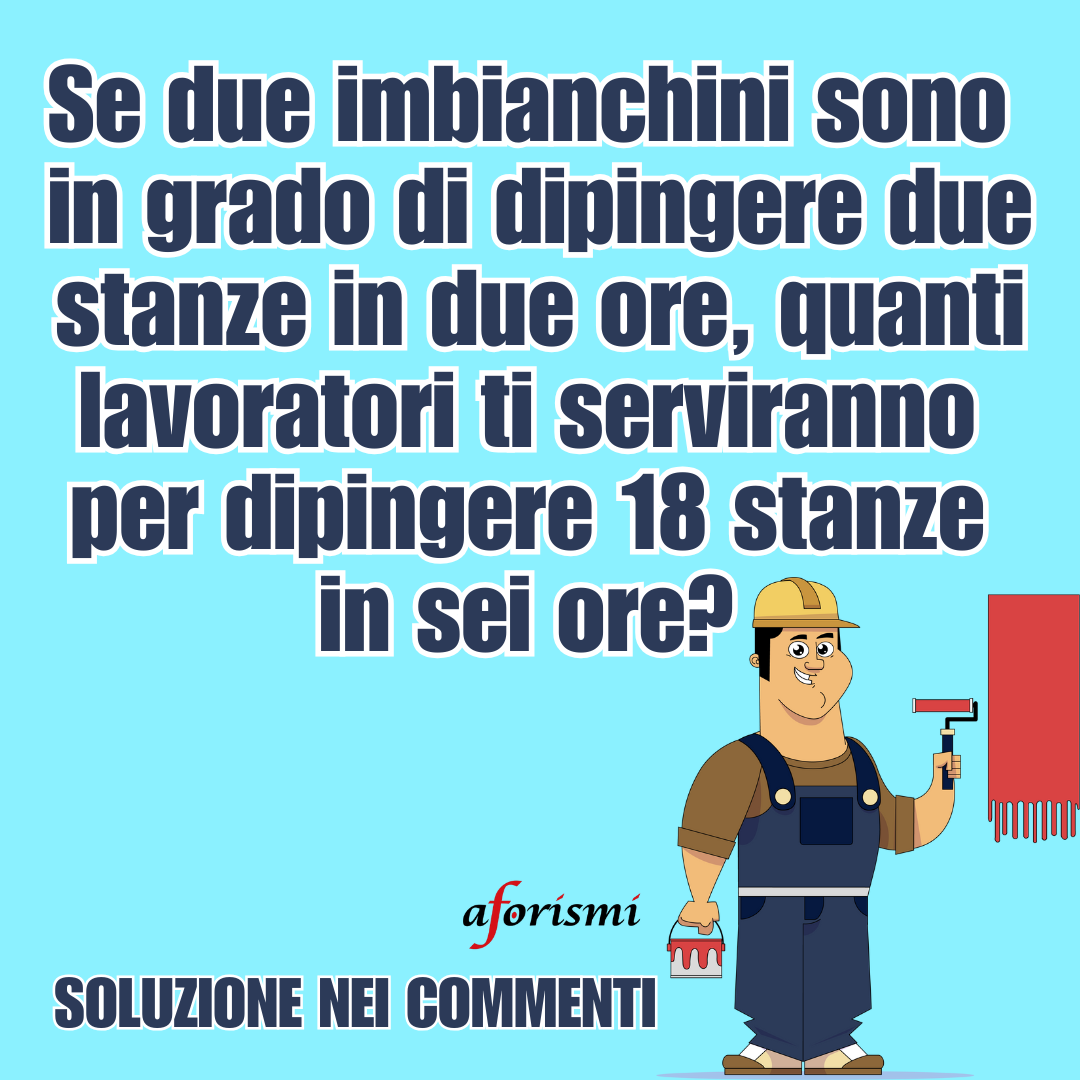 Se due imbianchini sono in grado di dipingere due stanze in due ore, quanti lavoratori ti serviranno per dipingere 18 stanze in sei ore?15 Ottobre 202415 Ottobre 2024di Aforismi.itPAROLE IN GIOCO
