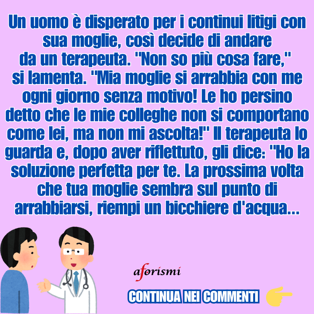 Un uomo è disperato per i continui litigi con sua moglie, così decide di andare da un terapeuta…18 Ottobre 202418 Ottobre 2024di Aforismi.itPAROLE IN GIOCO