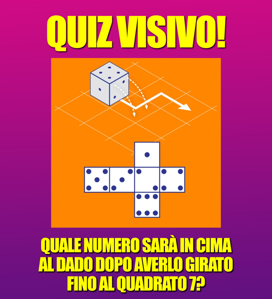 Quale numero sarà in cima al dado dopo averlo girato fino al quadrato 7?13 Ottobre 202313 Ottobre 2023di davidPAROLE IN GIOCO Cari lettori, ecco un bel quiz per allenare il cervello: E la risposta è… 3!