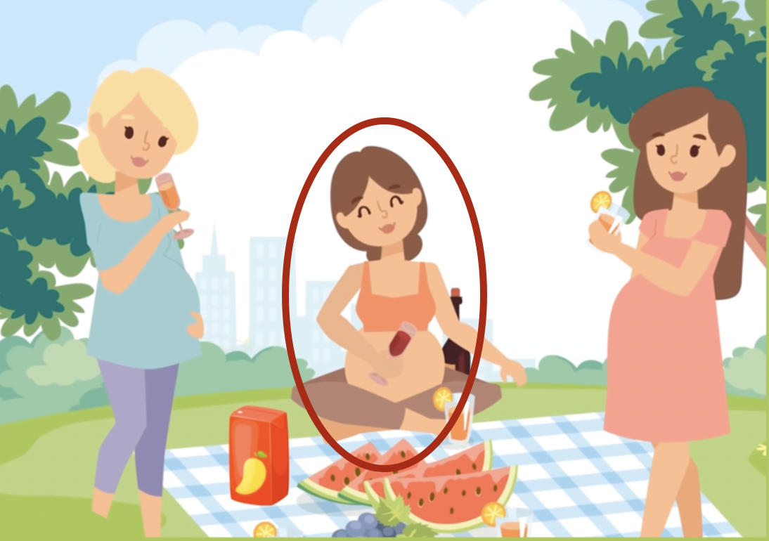 Appurato che tutte le donne rappresentate hanno una pancia che gli consente facilmente di passare per donne incinte, una di queste ha lo stomaco pieno; caratteristica da non confondere con l’aspettare un bambino. Un elementi in particolare in questa immagine chiarirebbe i vostri dubbi: che cosa eviterebbe di ingerire una donna in dolce attesa? Se riuscite a scoprirlo, riuscirete anche a risolvere questo enigma.