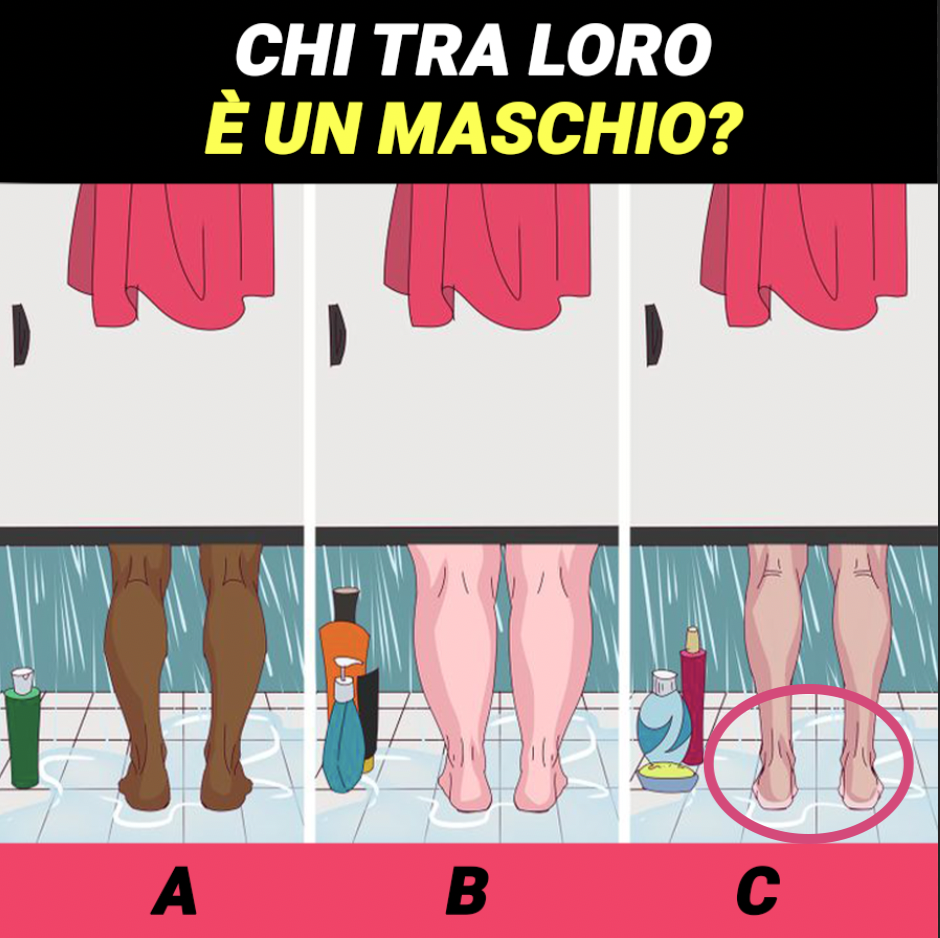 Riconoscere l’unico uomo in questa sfida non è così semplice. Pochi sono i dettagli a vostro a vostra disposizione e c’è solo un particolare che differenzia le gambe dell’uomo da quelle delle due donne presenti nella vignetta. Se ancora non sei riuscito a capire di cosa si tratta, ecco la soluzione.