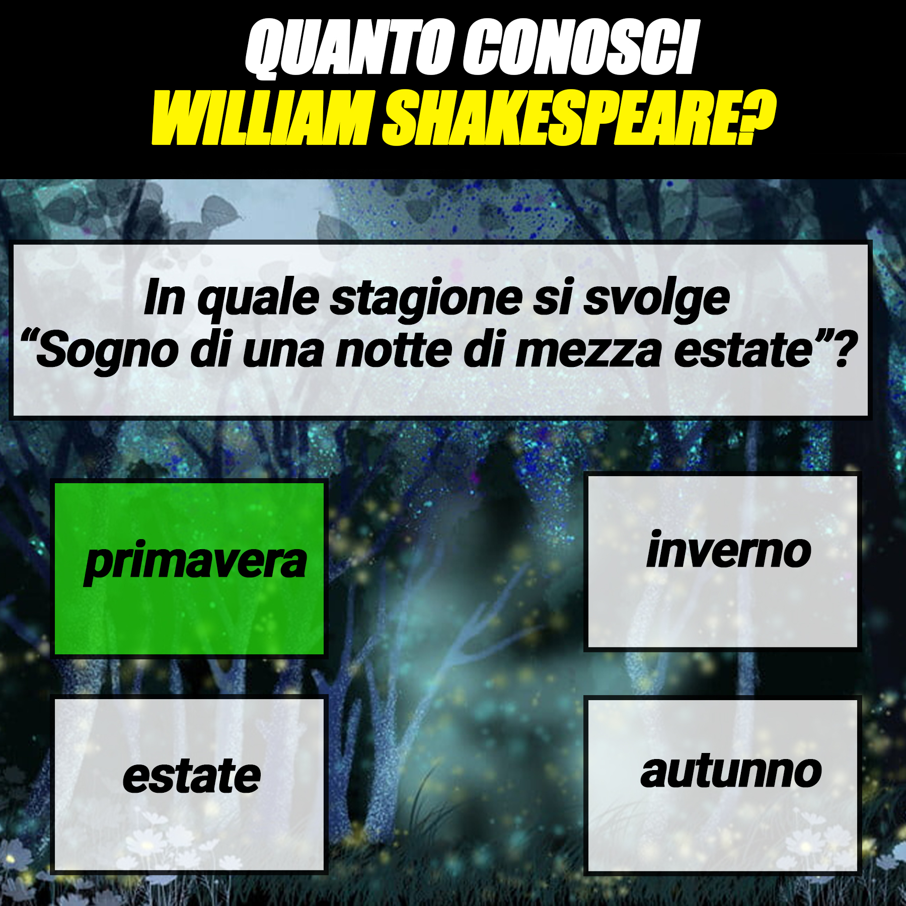 Bentornati su Aforismi.it. Sei pronta/o per mettere alla prova le tue conoscenze in ambito letterario? Quest’oggi andremo ad “analizzare” una questione davvero spinosa, riguardante uno dei poeti inglesi più famosi al mondo. Stiamo parlando ovviamente di William Shakespeare. Riesci a ricordare in quale stagione si svolge una tra le opere più note di questo autore?