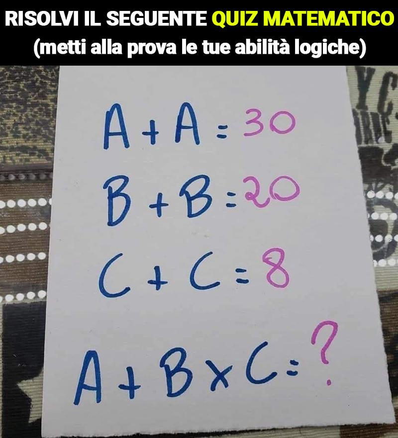 Benvenuti si Aforismi.it, la vostra pagina di stampo culturale che trova ogni giorno spazio per divertentissimi rompicapo da condividere con chi vuoi tu. L’immagine che vi presentiamo oggi è una vero e proprio test matematico, riesci a risolverlo?