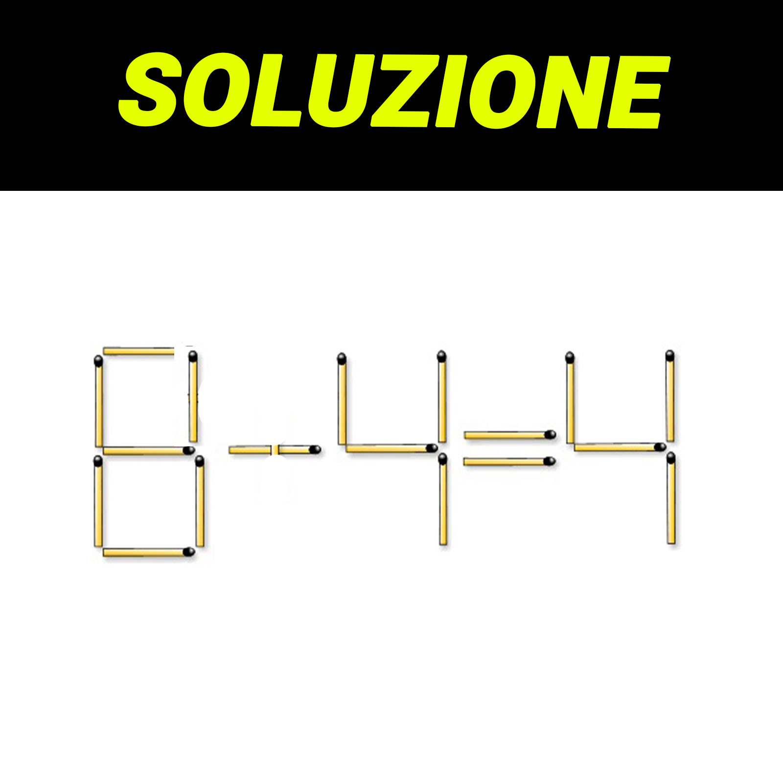 Muovendo un solo fiammifero è possibile far tornare i conti, ma di quale fiammifero stiamo parlando? Non dimenticate che potete giocare sia con i numeri, modificandoli ma anche con i segni, trasformando ad esempio il + in un -. Continuate a leggere per scoprire la soluzione.