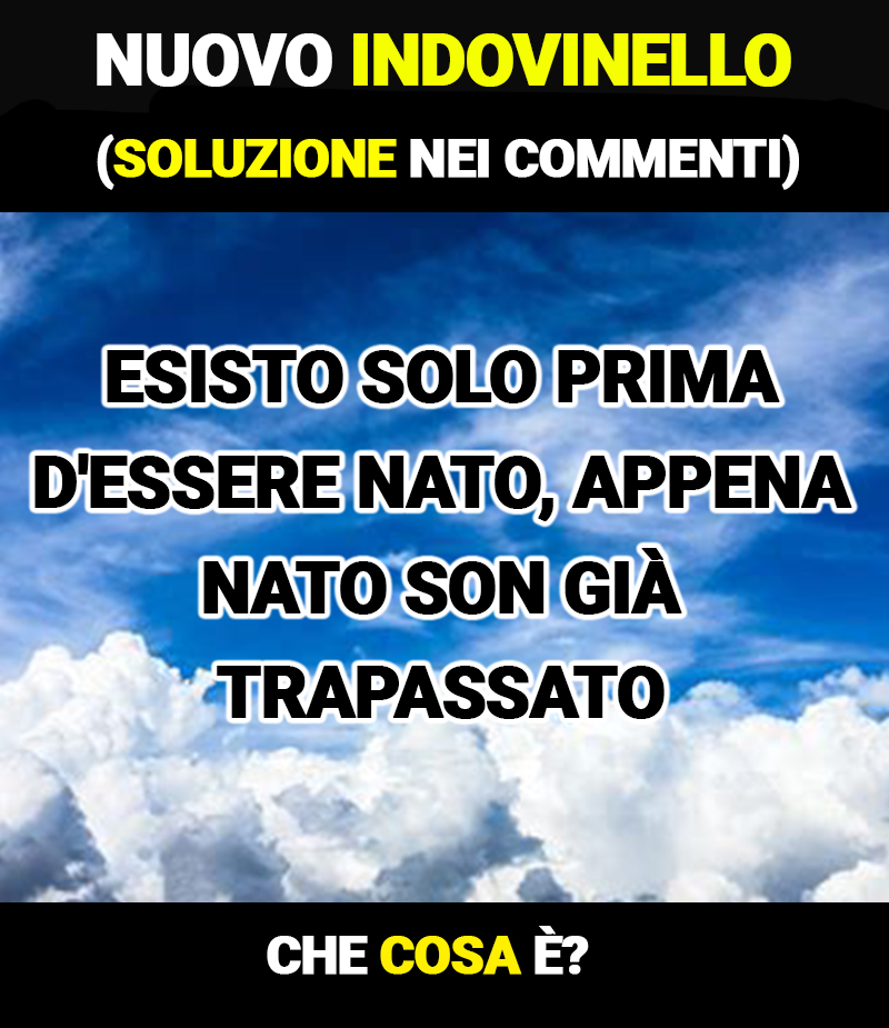 Benvenuti o bentornati sulla nostra pagina, dove ogni giorno pubblichiamo quiz, test e giochi per tutti i gusti. L’immagine di oggi recita un indovinello molto antico ma che riesce sempre a fare la sua figura, per questo motivo la nostra redazione ha deciso di proporlo a voi lettori. L’indovinello recita questo: “Esiste solo prima di essere nato, appena nato son già trapassato”. Riesci a capire a cosa si riferisce?