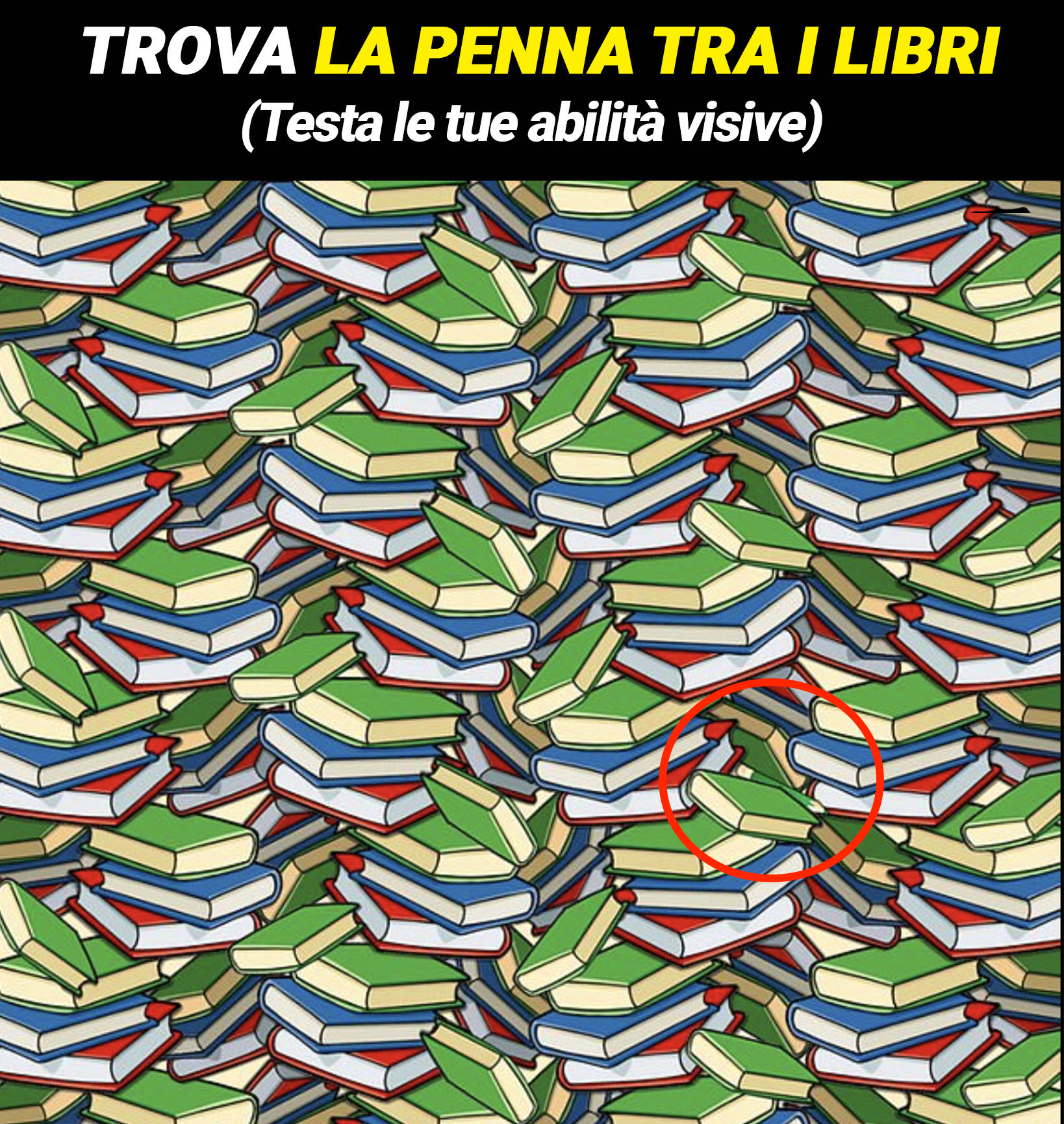 Riesci a trovare la penna tra i libri? Metti alla prova le tue abilità visive con questo test