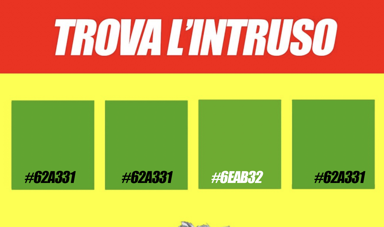 Ma torniamo a noi, siete riusciti a cogliere la differenza di colore che c’è tra questi quadrati? Soltanto uno si distingue dagli altri. Non siete riusciti a capire quale?