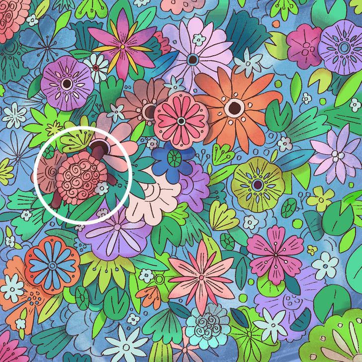 Immagini come questa sono create ad hoc per confondere lo sguardo degli spettatori, quindi se vi trovaste spaesati, non temete, è normale. Dunque, per risolvere questo test visivo nel minor tempo possibile, tralasciamo indizi e suggerimenti inutili e vi proponiamo uno zoom dell’immagine in questione, nella zona che più ci interessa, ovvero quella dov’è nascosto il nostro animaletto speciale.