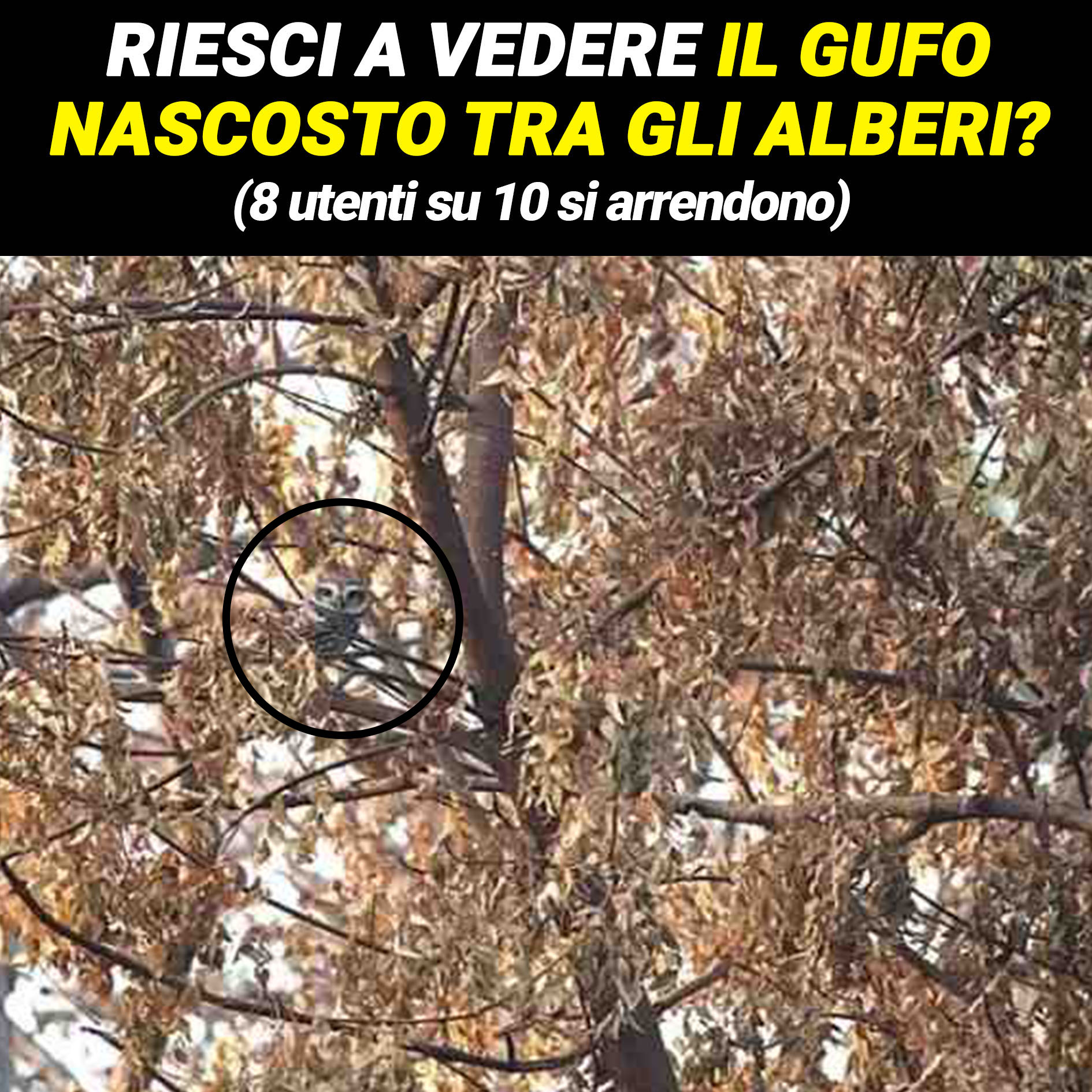 Bentornati su Aforismi.it il giornale completamente online che trova spazio per simpatici quiz da condividere con chi vuoi tu. L’immagine che vi presentiamo oggi è ambientata in un folto bosco in perfetto stile autunnale. Ma un gufo si nasconde tra le molteplici fronde, riesci a stanarlo?