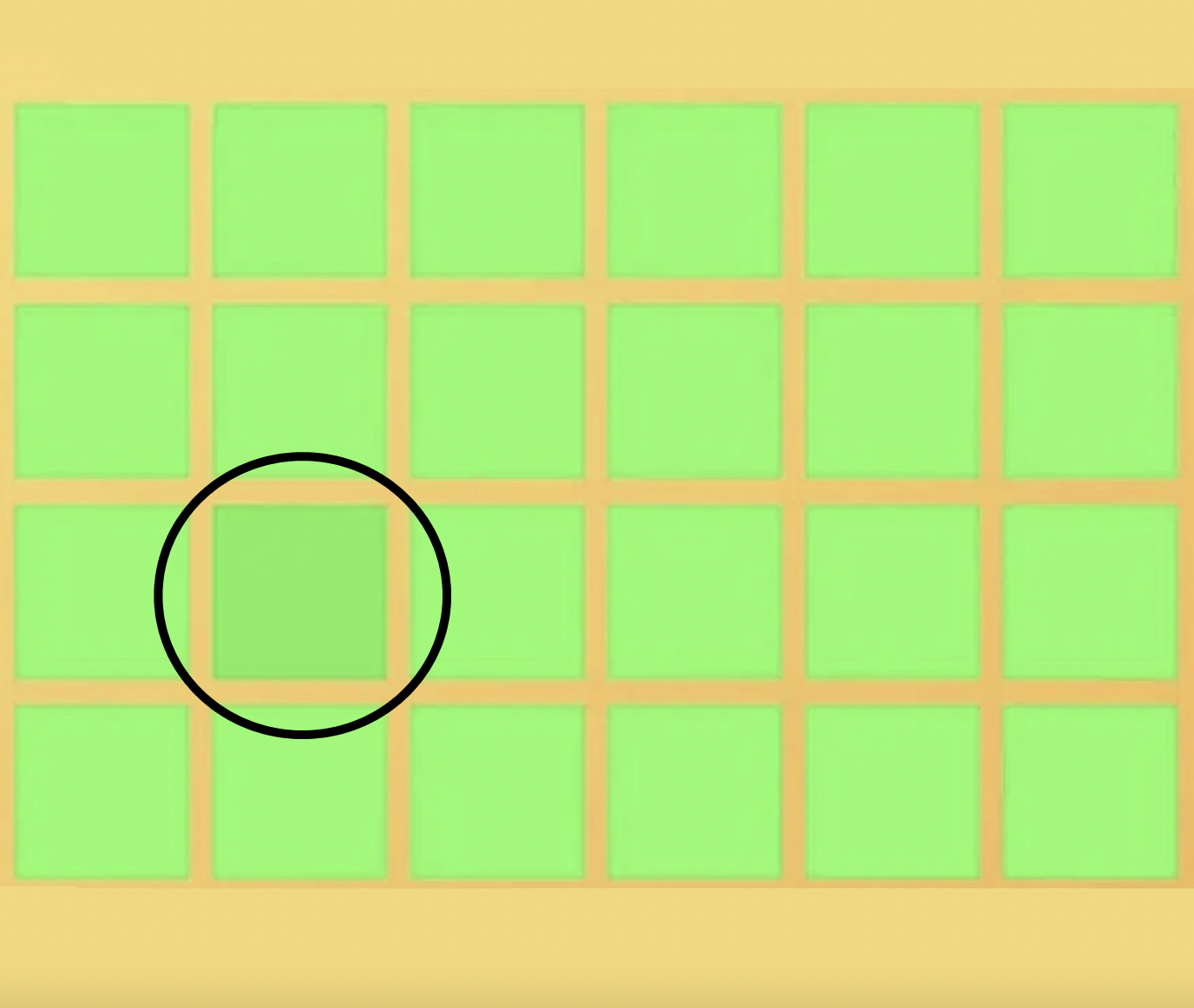 Guardiamo insieme l’immagine. Ancora niente? Provate ad inclinare lo schermo del vostro dispositivo e a cambiare prospettiva. Per riuscire a vedere meglio le sfumature dei quadratini, potreste salvare l’immagine in questione e provare a giocare con luminosità e struttura.